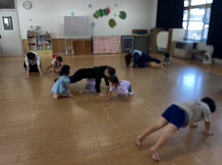 屋内での全身を使った運動あそびのプログラムを行いました。