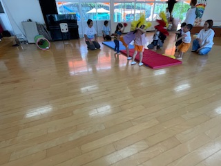 今回は、「未就園児の広場」の時間と園児は運動会に向けての跳び箱の練習を行いました。